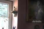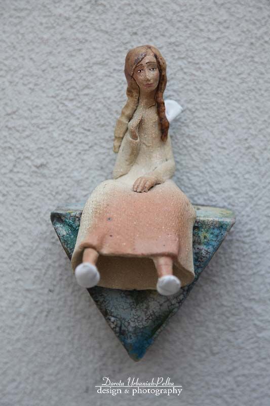 Anioł szamotowy przeznaczony do zawieszenia na ścianie . Z tyłu posiada stosowny otwór do zawieszenia.