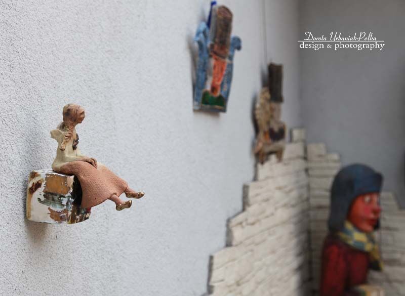 Anioł szamotowy przeznaczony do zawieszenia na ścianie lub postawienia. Z tyłu posiada stsowny otwór do zawieszenia.