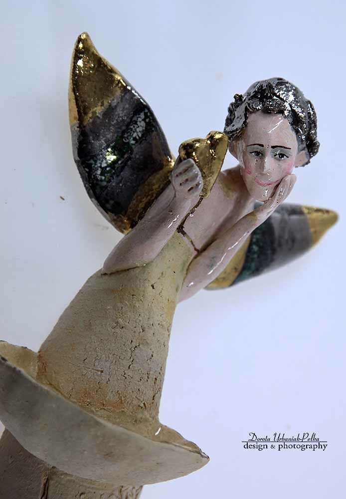 ANIOŁ ŚWIECZNIK TURMALINOWY ZE ZŁOTYM SERCEM