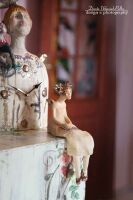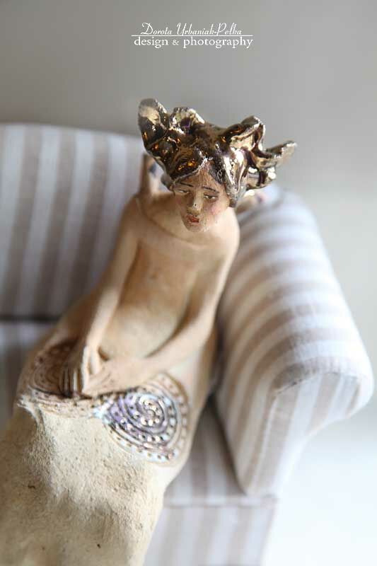 Włosy, skrzydło oraz buciki szkliwione złotem