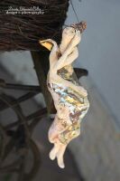 Skrzydła oraz elementy szaty szkliwione złotem.