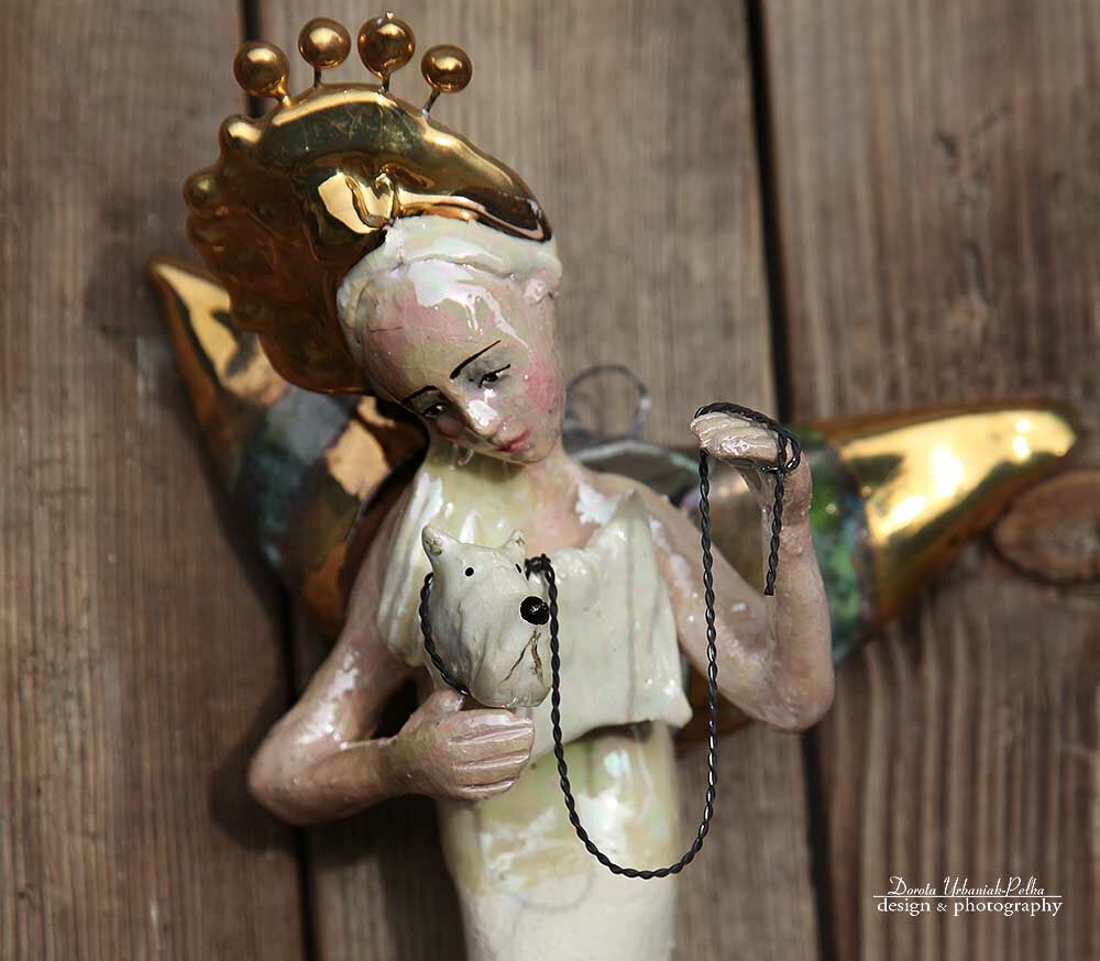 Skrzydła, nakrycie głowy szkliwione złotem.