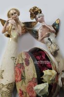 Skrzydła, nakrycie głowy szkliwione złotem.