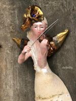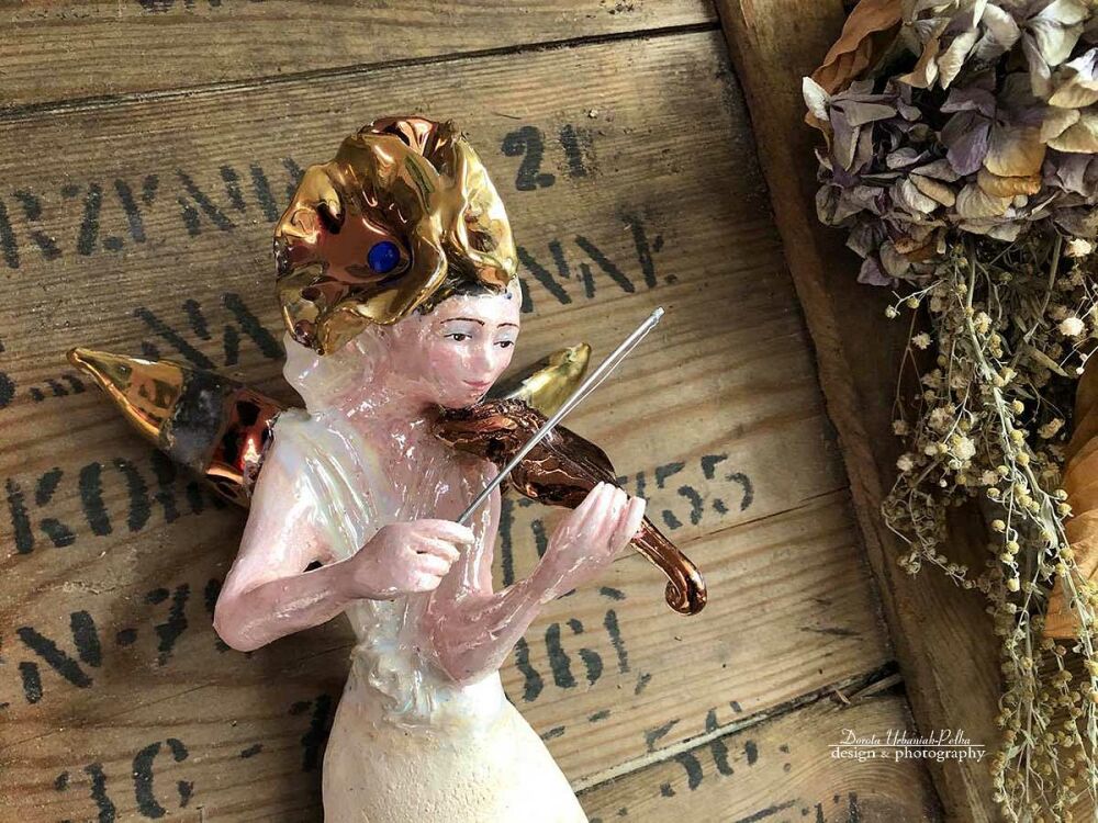 ANIOŁ TURMALINOWY Z MIEDZIANYMI SKRZYPCAMI