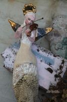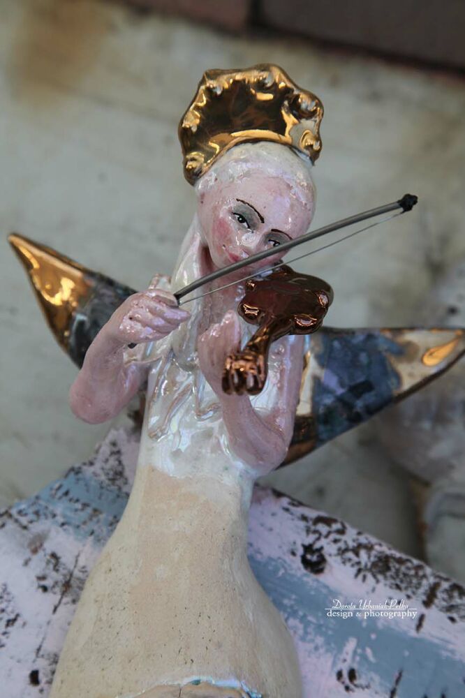 ANIOŁ TURMALINOWY Z MIEDZIANYMI SKRZYPCAMI
