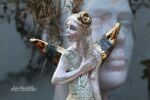 Skrzydła, kwiat na włosach szkliwiony złotem.