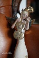 ANIOŁ TURMALINOWY ZE SKRZYPCAMI I PTASZKIEM