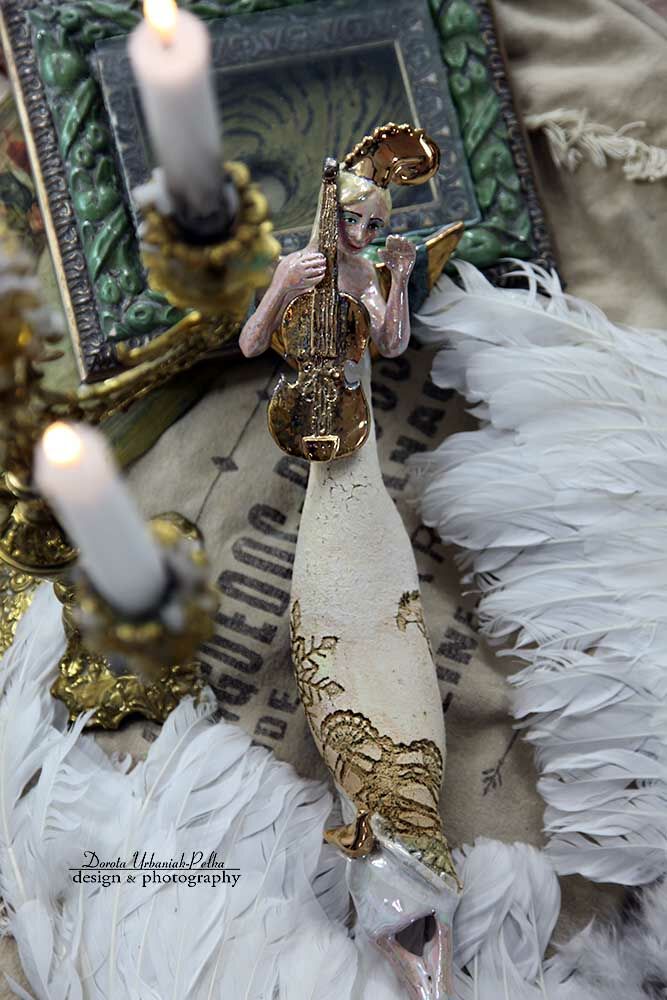 ZŁOTE SKRZYPCE , PTASZEK ORAZ SKRZYDŁA szkliwione złotem