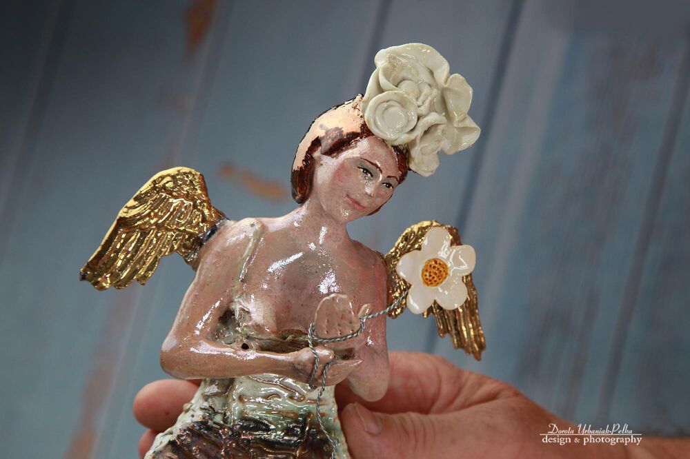 ANIOŁ Z BIAŁYM KWIATEM