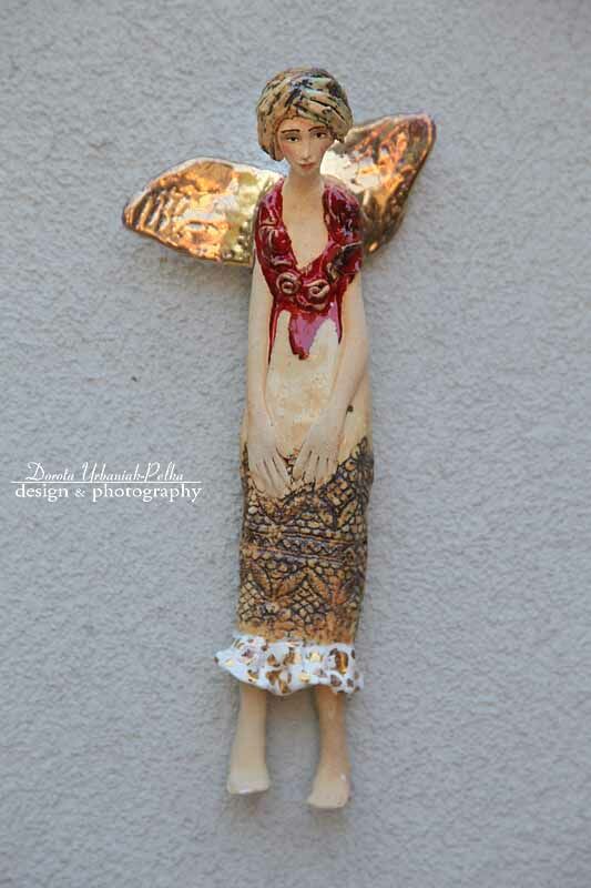 SKRZYDŁA ORAZ ELEMENT FALBANKI SZKLIWIONY ZŁOTEM.