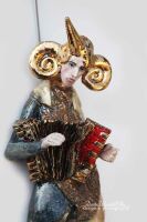 ELEMENTY HARMONII, ROŻEK, WŁOSY-WYWIJASY, BUT, SZATA Z PRZODU SZKLIWIONA ZŁOTEM.