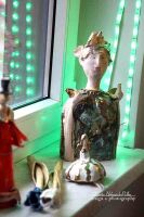 ZEGAR WYKONANY Z SZAMOTU. Szkliwo fakturowe. Skrzydła , tarcza oraz elemenciki ptaszków szkliwione prawdziwym złotem.