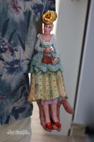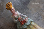 Oto dama, która bez słów opowiada historię elegancji — „Dama ze złotą różą, a jakże stateczna” to rzeźba, która łączy w sobie klasę retro z odrobiną współczesnej fantazji. Jej złota róża działa jak symbol: może marzeń, może tajemnicy, a może kobiecej siły? Drobne detale — falbaniasta bluzka, bogato zdobiona spódnica i czerwona torebka — tworzą postać, która z powodzeniem mogłaby być bohaterką paryskiego kabaretu albo... snu artysty.