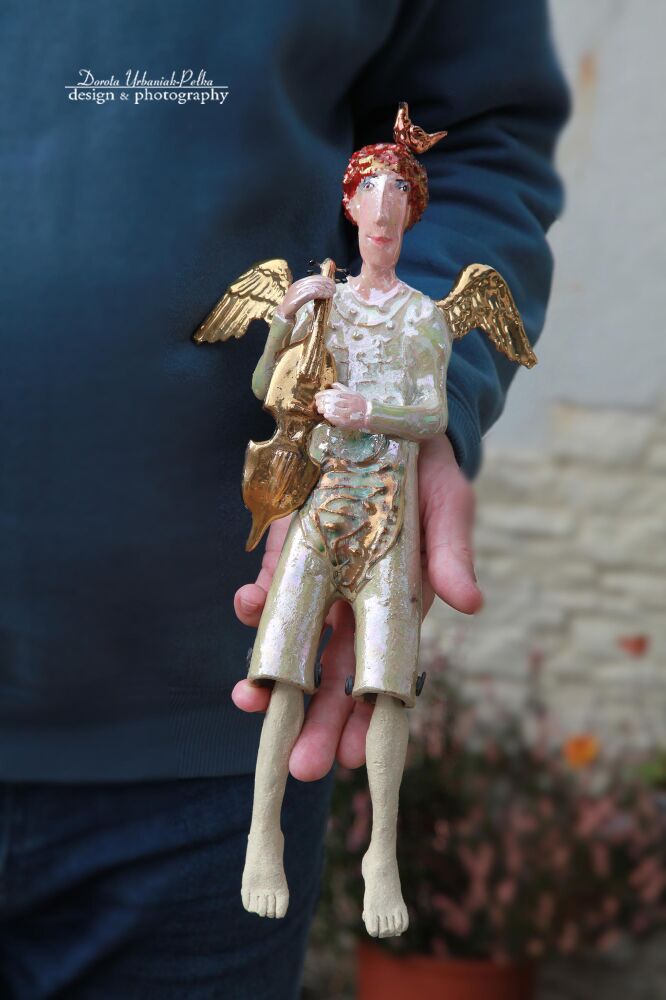 Anioł ze złotymi skrzydłami I WIOLONCZELĄ - z kolekcji "Równoległy świat".