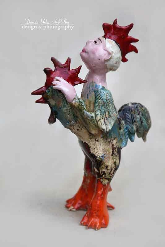 POSTAĆ KOGUTA WYKONANA Z SZAMOTU - SZKLIWIONY I WYPALONY W TEMPERATURZE 1080 st.