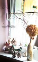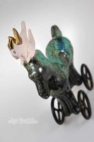 KOŃ WSPARTY NA STALOWYCH NIERUCHOMYCH KOŁACH.