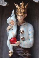 Korona oraz elementy stroju szkliwione prawdziwym złotem.