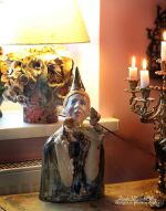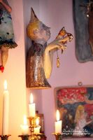 RUCHOMA ZAWIESZA NA PALCU W FORMIE MISIA - JAKO MARIONETKA W OPOWIADANIU - SZKLIWIONA I ZACZEPIONA NA SPLECIONYM DRUCIE.