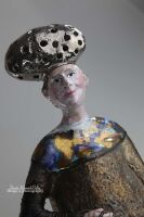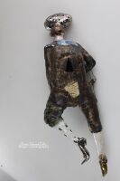 Rzeźba wiszącego Pierrotnika wykonana z szamotu szkliwionego.