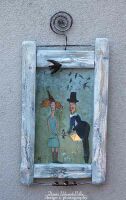 OBRAZ WYKONANY NA DESCE DREWNIANEJ.