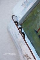 W DOLE DESKI METALOWA DRUCIANA PÓŁKA Z 5 JASKÓŁKAMI CERAMICZNYMI.
