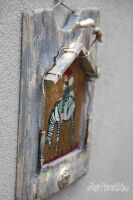 OBRAZ WYKONANY NA DESCE W TECHNICE OLEJNEJ - ZASTOSOWANY SZLAKMETAL W KOLORZE ZŁOTA - TŁO.