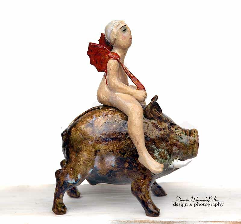 SKARBONKA. ZA POSTACIĄ OTWÓR NA PIENIĄŻKI NA TYLE SZEROKI ABY MOŻNA BYŁO WYCIĄGAĆ JE BEZ ROZBIJANIA SKARBONKI.