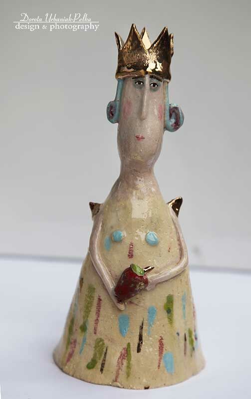 Czapka, skrzydła, kuleczki szkliwiona złotem.