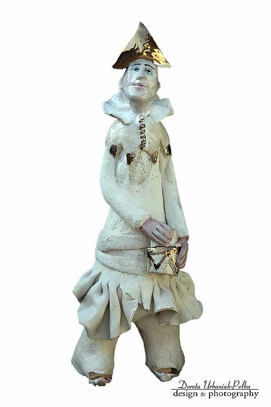 Pierrot - rzeźba kameralna - wykonana z szamotu.
