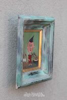 Oprawiona w ramę drewnianą postarzoną, od środka wykończona szlagmetalem koloru złotego.