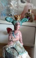 Anioł szamotowy , wypalony w technice RAKU.