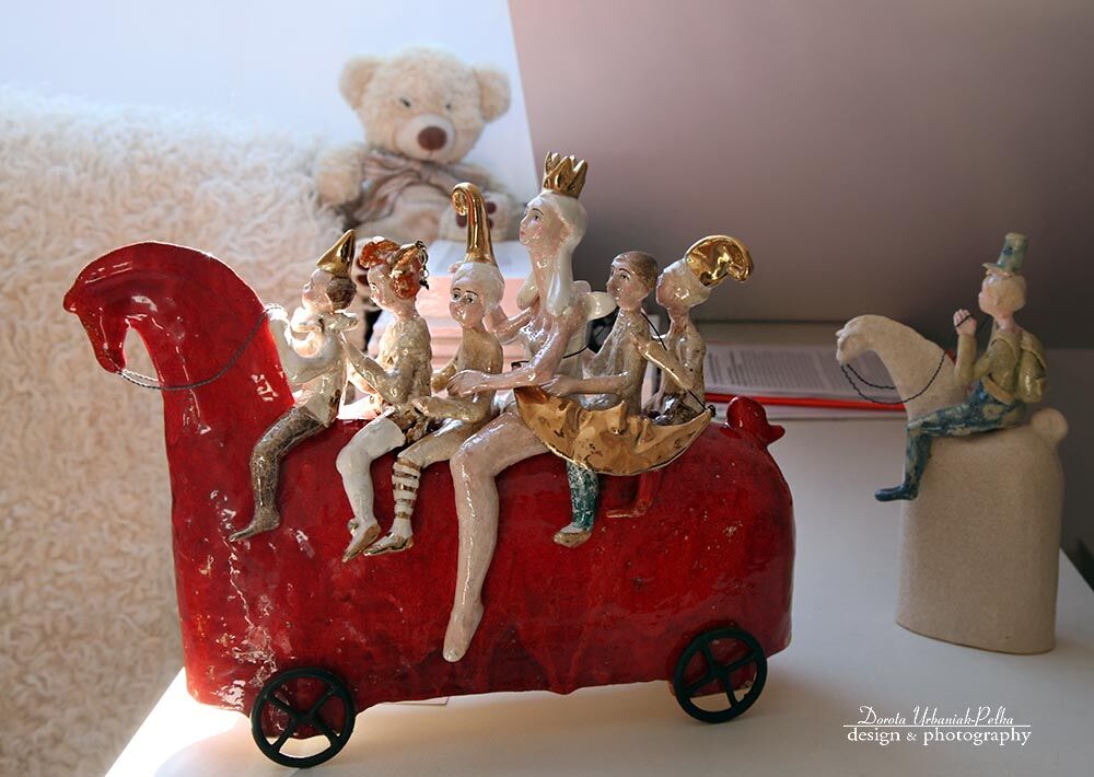 POSZCZEGÓLNE ELEMENTY POSTACI SZKLIWIONE ZŁOTEM ORAZ POKRYTE LUSTREM.