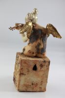 Skrzydła oraz liczne detale szkliwione miedzią oraz złotem.