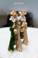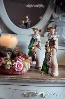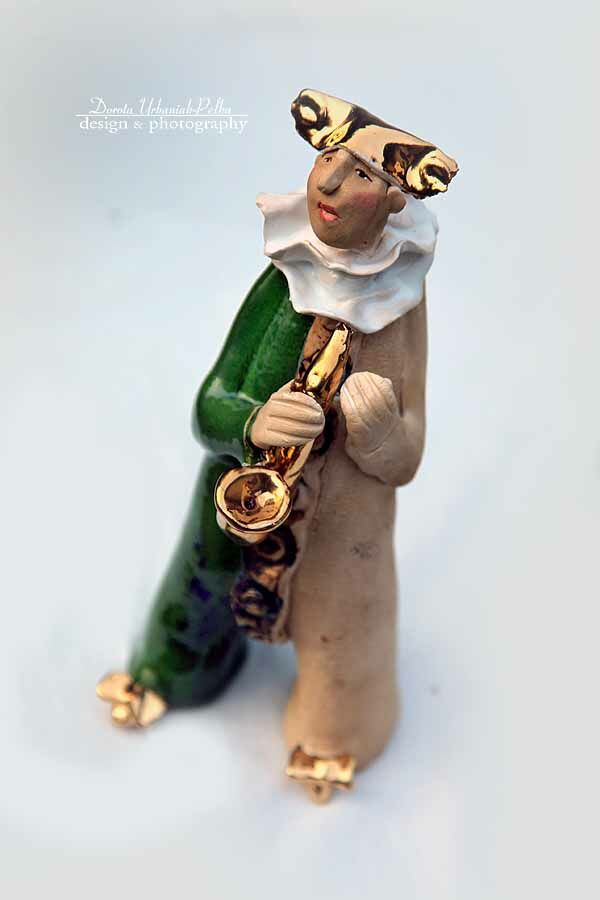 Elementy czapki , saksofonu oraz bucików szkliwione prawdziwym 16-karatowym złotem
