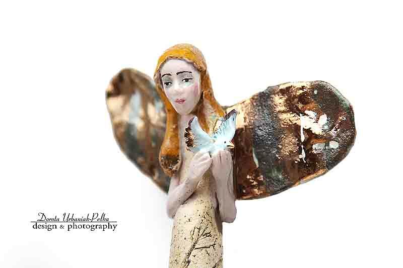 ANIOŁ O SKRZYDŁACH TURMALINOWYCH Z NIEBIESKIM PTAKIEM