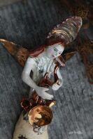 Skrzydła oraz liczne detale szkliwione miedzią oraz złotem.