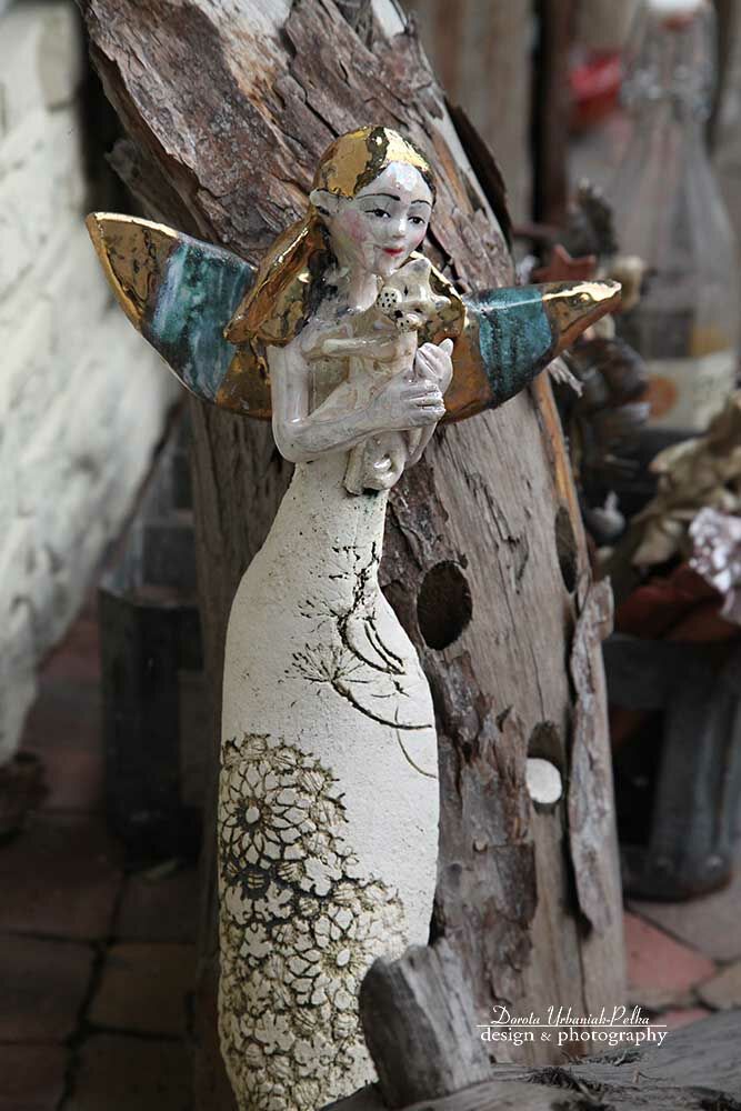 Skrzydła, włosy szkliwione złotem