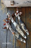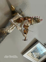Skrzydła oraz liczne detale szkliwione miedzią oraz złotem.