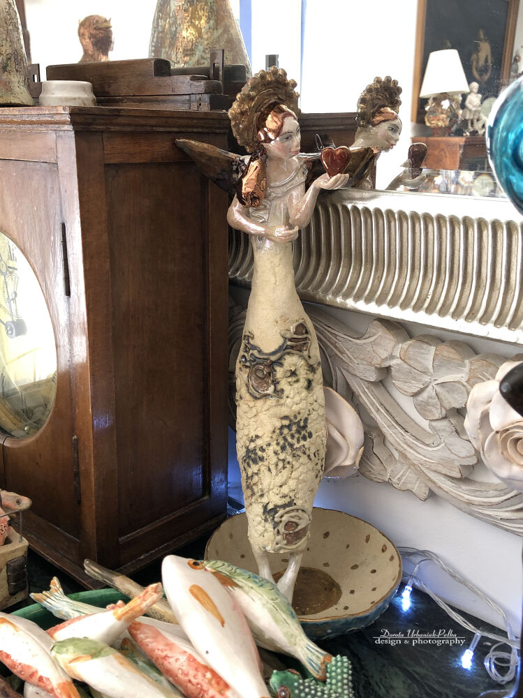 Skrzydła oraz liczne detale szkliwione miedzią oraz złotem.