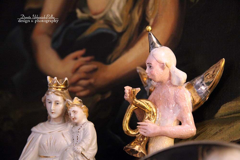 Skrzydła, trąbka szkliwione złotem.