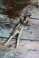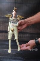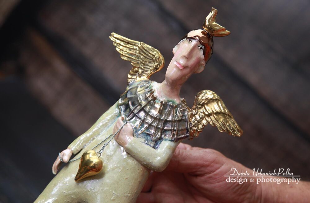 Anioł ze złotymi skrzydłami, ptaszkiem i złotym sercem - z kolekcji "Równoległy świat".