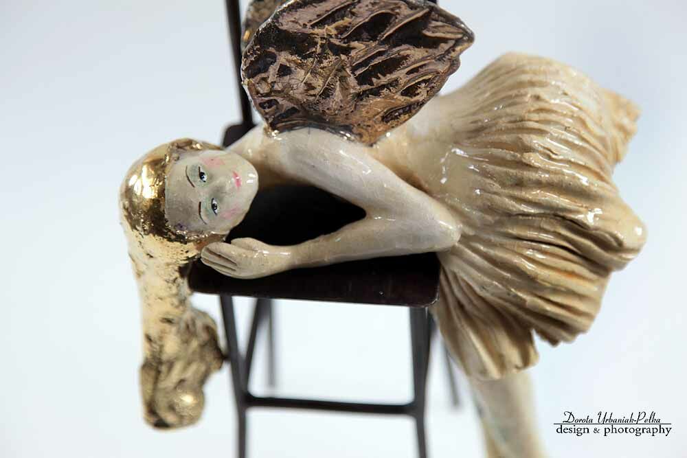 SKRZYDŁA, WŁOSY , BALETKI SZKLIWIONE ZŁOTEM.