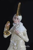RZEŹBA PIERROTA WYKONANA Z GLINY SZAMOTOWEJ.