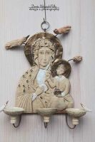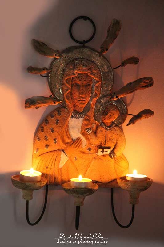 CZARNA MADONNA W POŚWIACIE ŚWIEC Z PTAKAMI