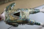 Bębenek szkliwiony przemiennie złotem i miedzią.