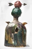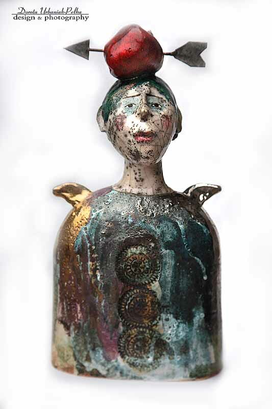 Postać wykonana z szamotu wypalonego w technice RAKU.