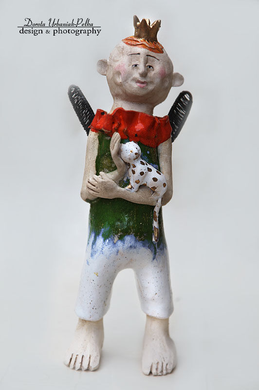 Korona oraz elementy kota szkliwione prawdziwym złotem.