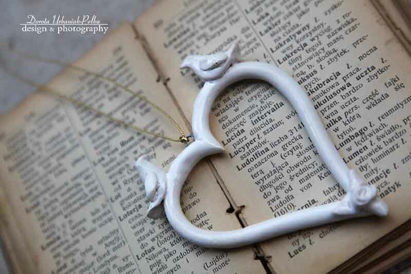 SERCE BIAŁE Z PTASZKAMI - ZAWIESZA DEKORACYJNA CERAMICZNA