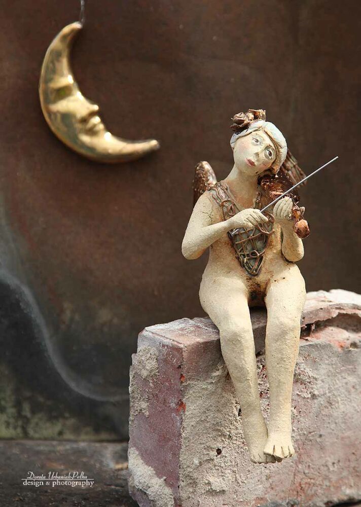 Anioł wykonany z szamotu.