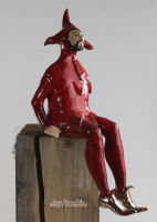 Rzeźba Stańczyka wykonana z szamotu szkliwionego.